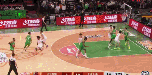 第二節后半段上海持續強殺遼寧內線,張鎮麟再獲2罰,付豪回敬拋投,洛夫頓中投、王哲林搶下籃板強起繼續軍訓莫蘭德,遼寧又是連續多個回合沒有得分,1分16秒古德溫外線干拔投進上海本場第一記三分;