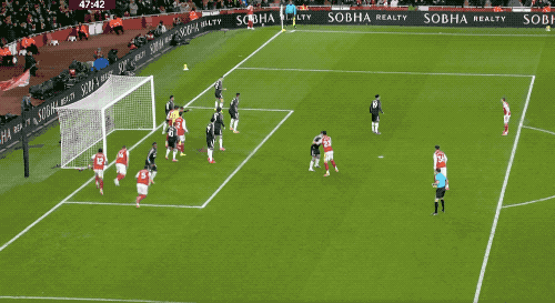 下半場開始僅僅3分鐘,阿森納獲得本場比賽的第一個角球,薩卡將球開出,加布里埃爾搶在馬丁內(nèi)斯之前,將球打進。