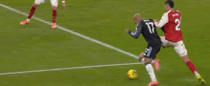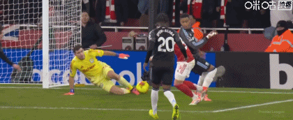 第67分鐘,阿森納反擊,因卡皮耶插入禁區自己摔倒